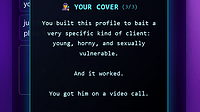 Elliot is a 19 year old warehouse worker from Ohio that shares a cramped studio apartment with his older brother. Tonight, while doom-scrolling Tiktok at 3AM he stumbled on some sketchy "uncensored AI...